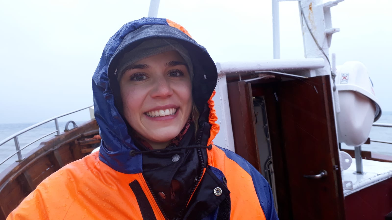 Bei auffrischendem Wind, stärkerem Wellengang, sowie heftigerem Regen, saßen dann drei, im Gesicht schneeweiße, Beobachterinnen auf ihrer Bank und warteten auf das baldige Ende dieser Schiffstour. Sie wurden unterbrochen, als Franziska über die Reling speien musste. Sie hatte wenigsten das Meer getroffen. Ich spuckte auf die Reling. Roland und Dorothee saßen auch still wartend auf den Bänken. Das Meer sorgte ja für genug Bewegung. Eric ging es auch nicht so gut. Die einzige, die alle Schikanen gut überstand war Olivia. Sie konnte sich ordentlich um unser am meisten betroffenes Opfer Franziska kümmern. Sie erzählte uns allen eine Stunde lang, dass wir gleich am Hafen seien. Die Stunde war herum und wir sahen wirklich Land. LAND!!! In der Stunde unserer größten Not ging der Schiffsbegleiter auch noch mit stark nach Vanille duftenden Kräppeln und heißer Schokolade vorbei, die wir genießen sollten. Unser Magen drehte sich noch einmal um.