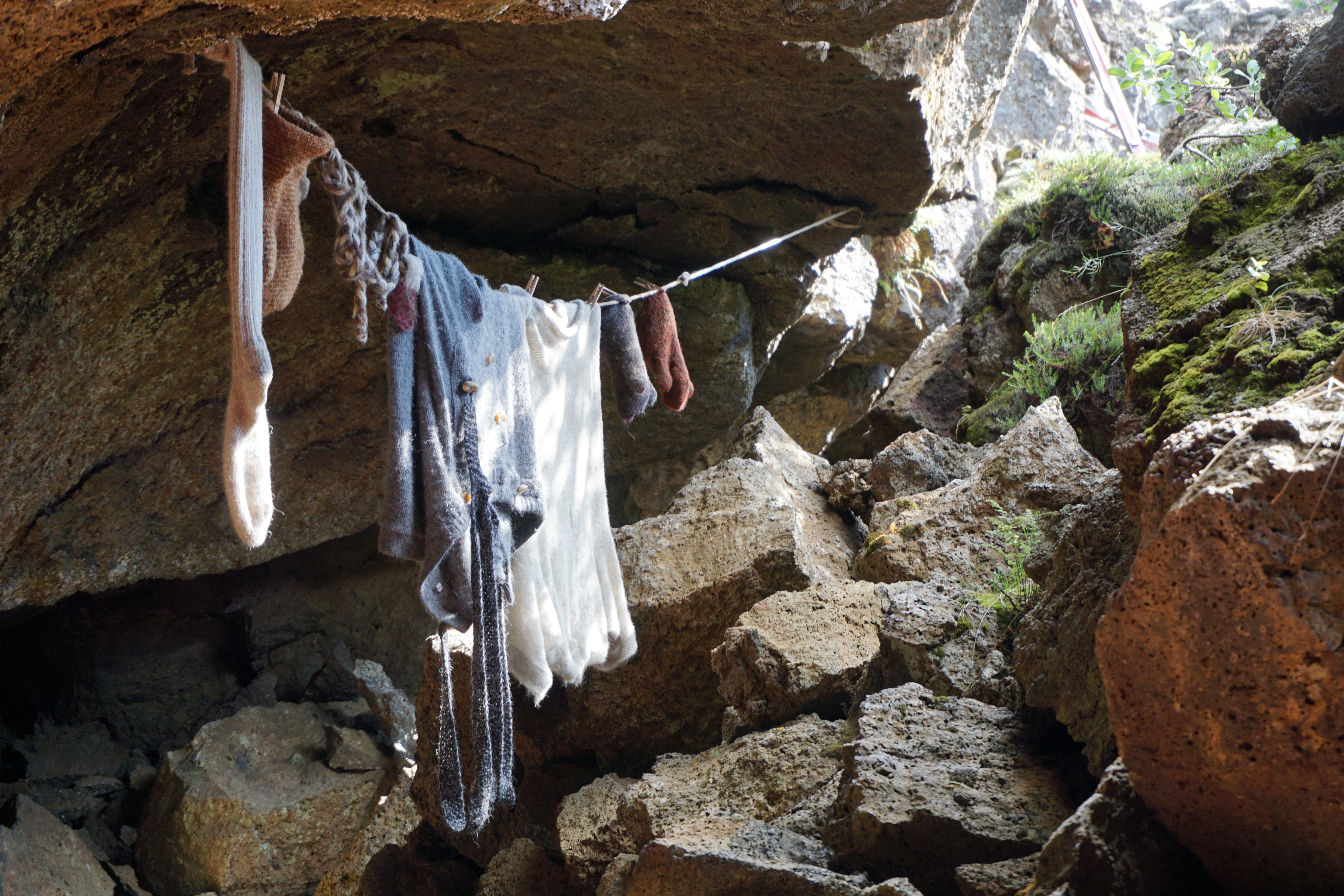 Auf einem Felsen wurde eine Kaffeepause eingelegt, aber ohne Kaffee, der war noch im Auto. Interessant wurde dieses Lavafeld durch seinen Pflanzenbewuchs. Birken, die arktische Weide, die bei guten klimatischen Bedingungen auch etwas höher wurde und in der Sonne silbrig leuchtete. Heidekraut, Preiselbeersträucher mit grünen Früchten, Moosbeeren mit kleinen blauen Kugel, ich habe sie gekostet, sie schmecken säuerlich bis bitter. Nun warten alle darauf, dass ich nach ihrem Genuss Kohletabletten essen muss, aber sie waren genießbar. Olivia und Dorothee fanden ein Schaltuch voll Pilze, die am Abend vorbereitet wurden. Dem Himmel sei Dank, sie hatte Roland ("unabsichtlich") mit Glasscherben eines zerbrochenen Glases dem Mülleimer preisgegeben. Ich denke, da hätte die vorhandene Kohle nicht genügt.