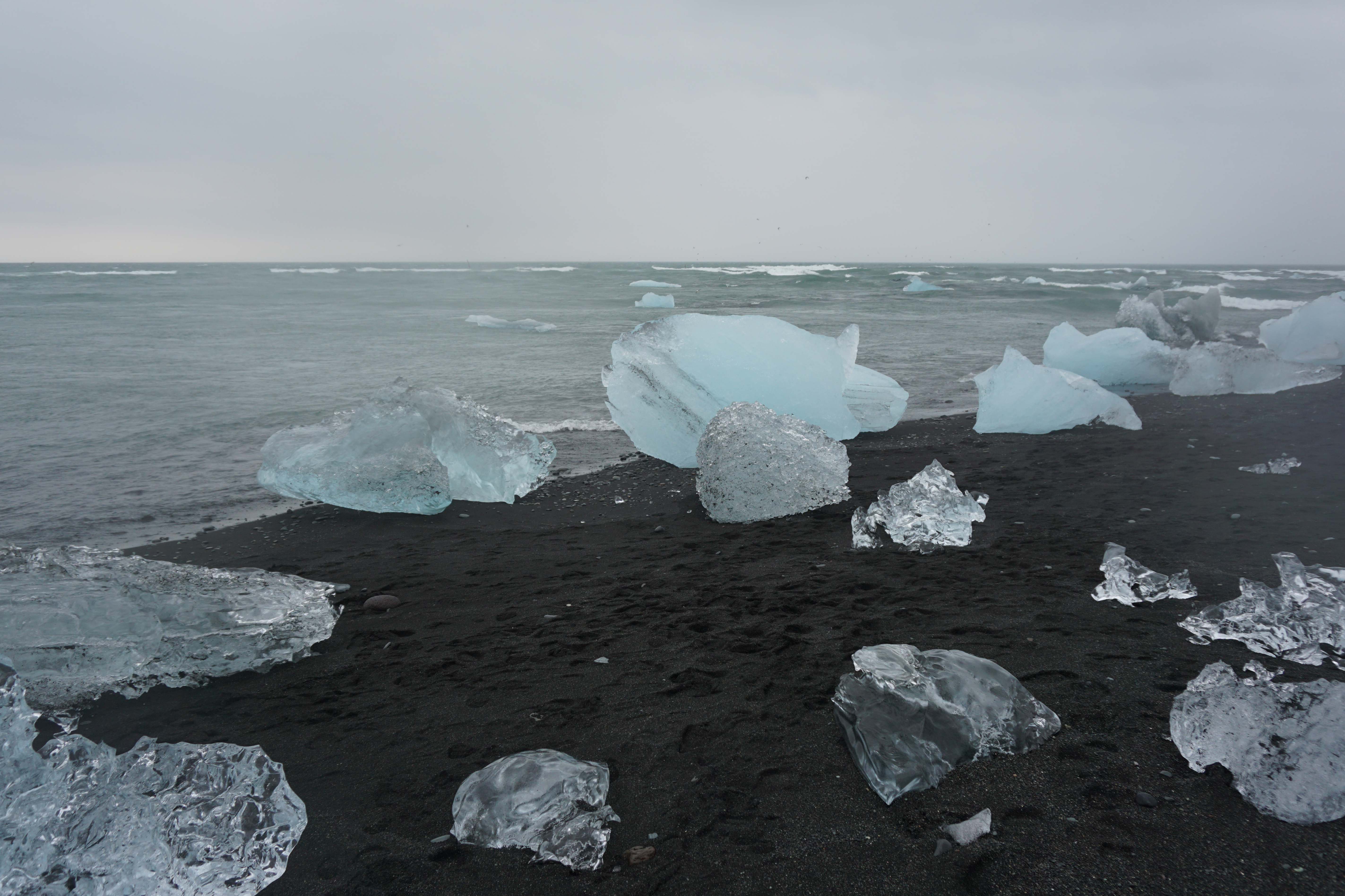 Es folgte die Mittagspause im Auto und ein Fotostop für Franziska am Diamantenstrand. Kleinere und größere Eisdiamanten lagen dort matt und glänzend.