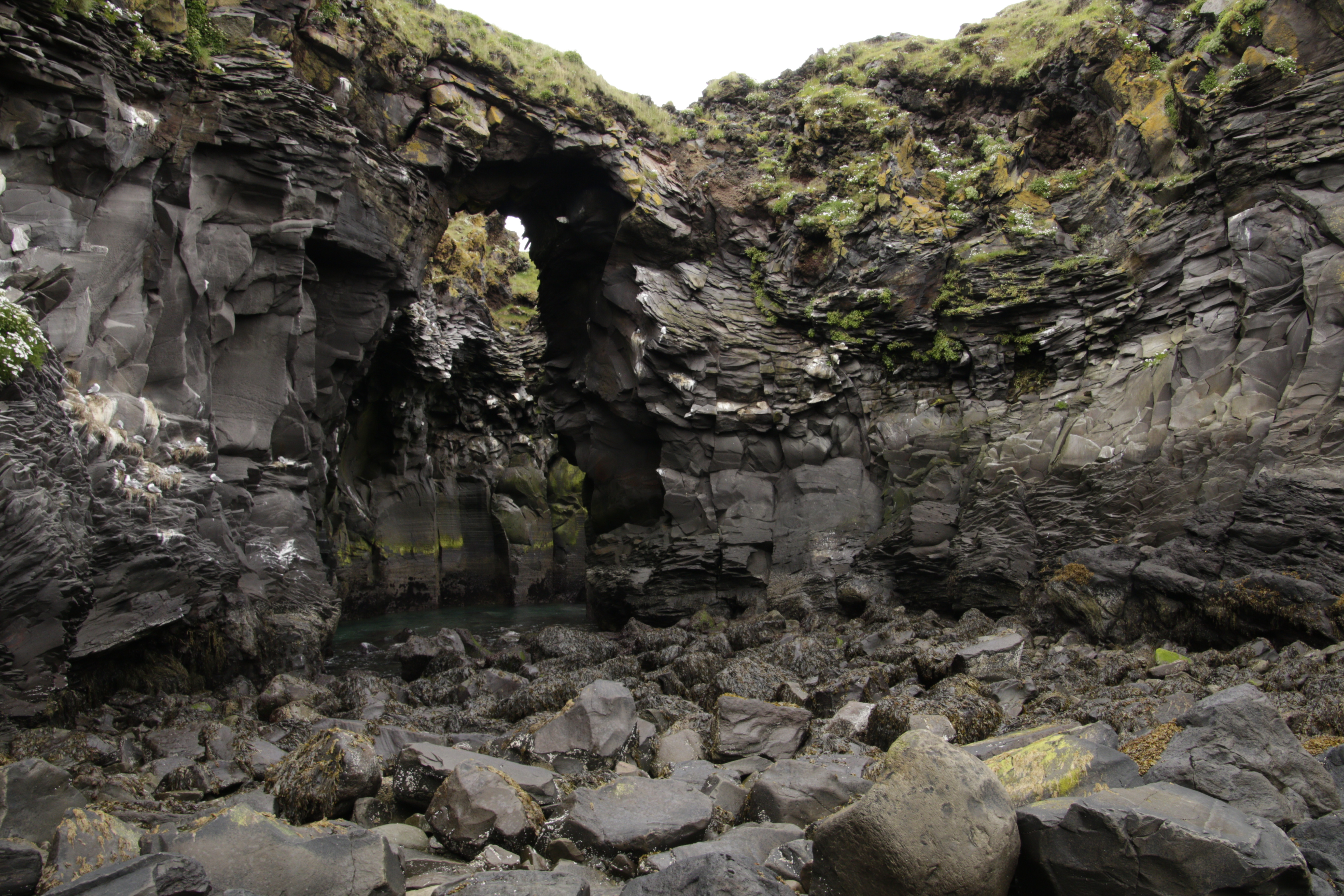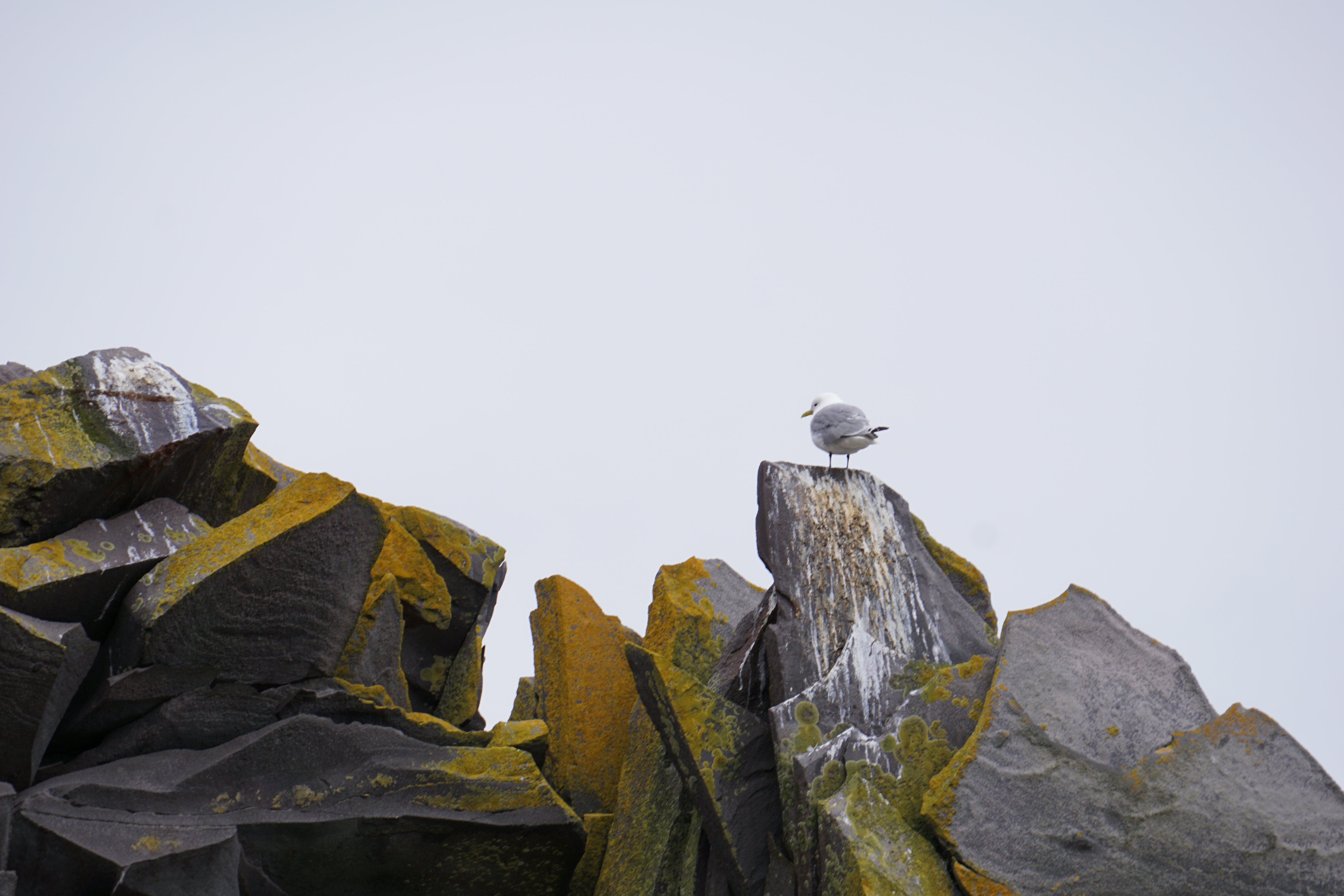 Am roten Strand des Nordmeeres gab es eine Kaffeepause. Nun wurde noch eine Felsenhöhle mit Nistplätzen von Möwen „geknipst“.
