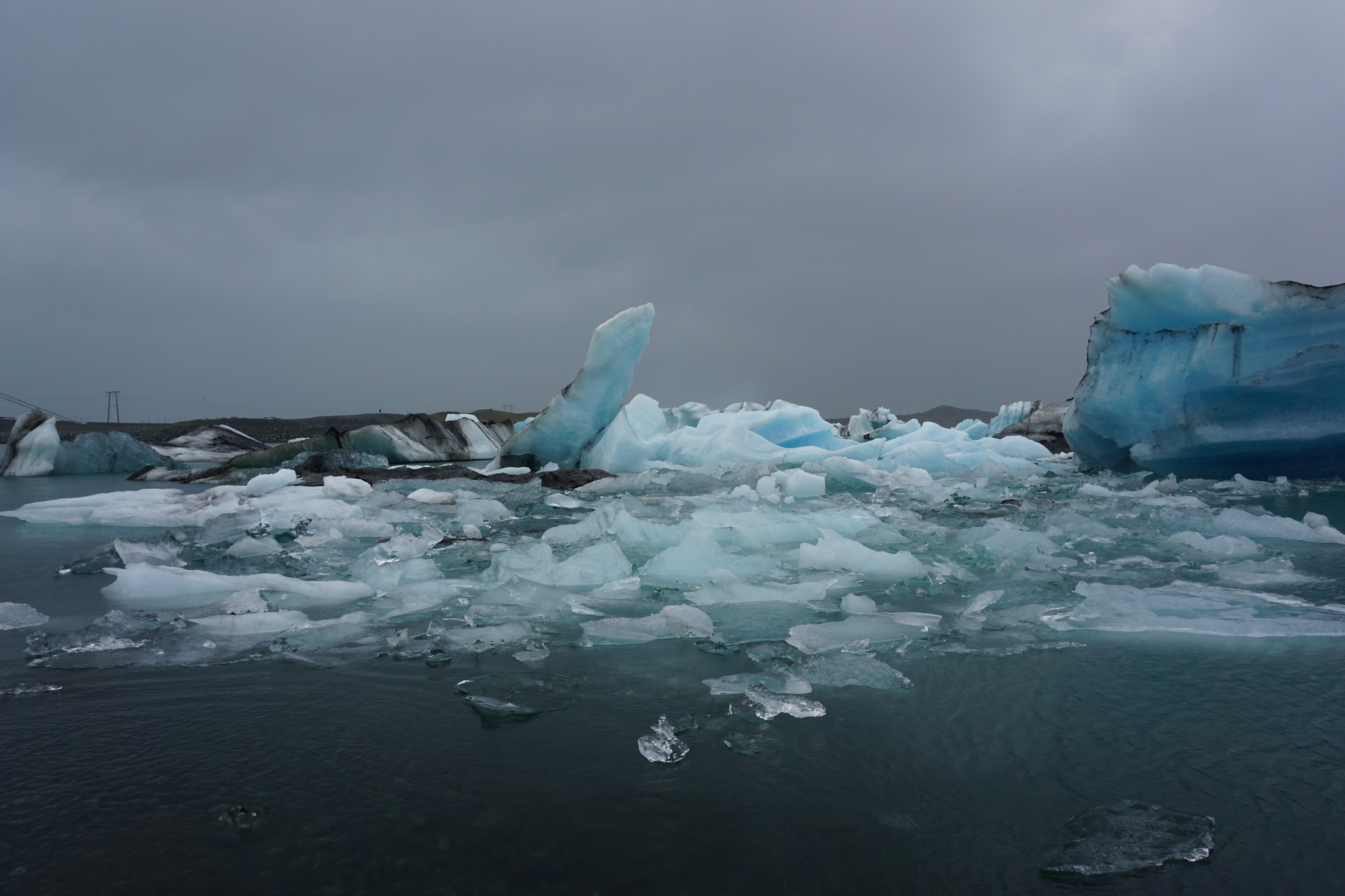 Wir wurden aber reichlich entschädigt durch den Besuch des Gletschersees Jökulsárlón. Riesige, blau schimmernde Eisstücke schwammen dicht gedrängt auf dem Wasser. Es hat uns sehr gefallen. Was uns nicht gefallen hat, war, dass wir von einem plötzlichen Regenschauer überrascht wurden und triefend nass wieder ins Auto stiegen. Hosen zum Wechseln lagen bereit.